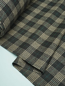 Шерсть пальтово-костюмная Твид "Клетка цв.бежево-зеленый на коричневом", ш.1.5м, шерсть-50%, п/э-50%