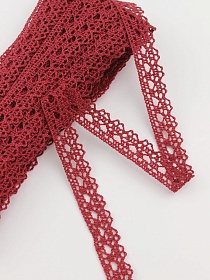 Кружево цв.бордово-красный, ш.12мм, хлопок-90%, п/э-10%, 10м, рис.071/17
