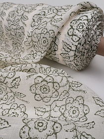 Льняная сетка "Цветочное переплетение под набойку" цв.кремовый/зеленый хаки, ш.1.15м, лен-100%, 100гр/м.кв