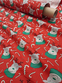 10974 товаровСатин "Рождественские оленята" цв.алый, ш.1.6м, хлопок-100%, 120гр/м.кв