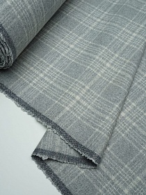 Шерсть пальтово-костюмная Твид "Клетка цв.белый на св.сером", ш.1.5м, шерсть-60%, п/э-40%