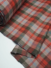 Шерсть пальтово-костюмная Твид "Клетка" цв.красный/зеленый/кофейный, ш.1.5м, шерсть-60%, п/э-40%