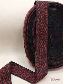 Лента тканая для поясов, 50мм Красный орнамент на черном, рис.9478