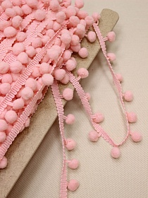 Тесьма "Помпоны" цв.св.розово-коралловый, шир.тесьмы без помпона-10мм; помпон Ø-11мм, п/э-100%