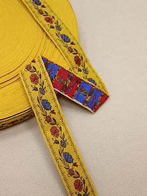 10975 товаровЖак.лента 24мм Васильково-красные цветы на желтом