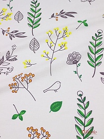 Поплин "Гербарий с птичками", ш.2.2м, хлопок-100%, 110гр/м.кв