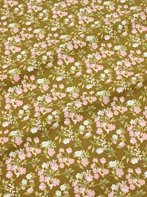 Теплый хлопок "Нежные бутончики" цв.св. бежевый с оливк.оттенком, ш.1.5м, хлопок-100%, 150гр/м.кв
