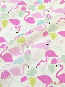 Саржа "Розовые фламинго на белом", ш.1.4м, хлопок-100%, 135 гр/м.кв
