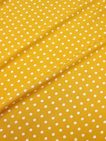Штапель "Белый горох (5мм)" цв.желто-оранжевый, ш.1.42м, вискоза-100%, 90гр/м.кв.
