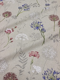 Полулен "Черемша - синие цветы" (на суровом), ш.1.5м, лен-30%, хлопок-70%, 140гр/м.кв