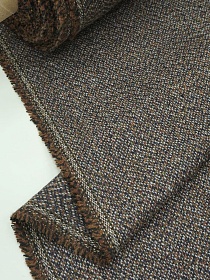 Шерсть пальтово-костюмная Твид "Зигзаг" цв.чернильно-коричневый меланж, ш.1.5м, шерсть-30%, п/э-70%