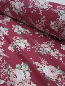 Импорт. хлопок "Роскошный букет" цв.малиновый, ш.1.45м, хлопок-100%, 100гр/м.кв