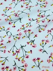 Штапель "Мелкие гвоздички на небесно-бирюзовом" СОРТ2, ш.1.43м, вискоза-100%, 95гр/м.кв