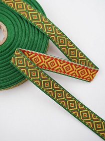 Жак.лента 16мм Желто-красные ромбы на сверкающем зеленом