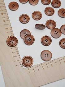 Пуговица дерево, цв.миндальный, 25мм, 4 отверстия