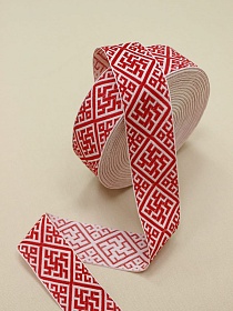 Жак.лента 50мм Крупный красный славянский орнамент на белом