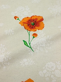 Полулен "Яркие маки" (на суровом), ш.1.5м лен-30%, хл-70%, 145гр/м.кв