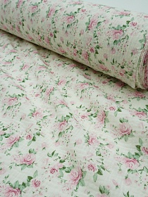 10847 товаровМуслин двухслойный с эф.жатости "Розовый каприз" цв.кремовый, ш.1.4м, хлопок-100%, 120гр/м.кв