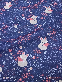 Бязь "Лесная полянка с лисичками" цв.темно-синий, СОРТ2, ш.1.5м, хл-100%, 120гр/м.кв