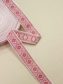 Жак.лента 24мм Красный орнамент на белом, рис.9686/1