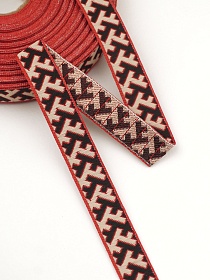 Жак.лента 18мм Славянский черно-кремовый оберег на красном