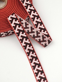 Жак.лента 18 мм Славянский черно-белый оберег на красном