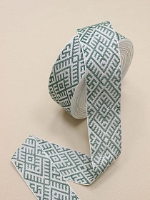 Жак.лента 24мм Зеленый орнамент на белом