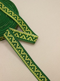 Жак.лента 24мм Св.желтый оберег на зеленом, рис.8621/9
