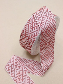 Жак.лента 18мм Славянский черно-кремовый оберег на красном