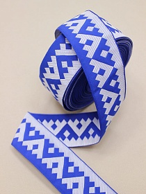 Жак.лента 50мм Белый славянский орнамент на темно-васильковом