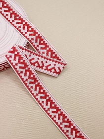 Жак.лента 24мм Красный орнамент-оберег на белом