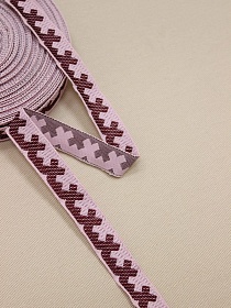 Жак.лента 18мм Бордово-вишневый орнамент на нежно-розовом