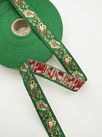 Жак.лента 22мм Вьюнок красно-желтый на зеленом, рис.8933/5