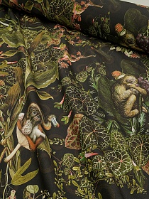 Интерьерный хлопок "Чудо джунгли" цв.черный, ш.1.5м, хлопок-100%, 250гр/м.кв