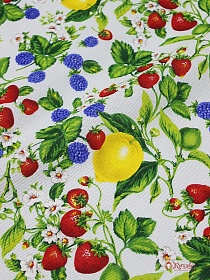 Рогожка "Ягодки с лимоном на бледно-голубом", ш.1.5м, хлопок-100%, 160гр/м.кв