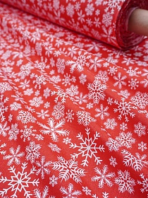 Бязь "Белые снежинки на красном", ш.1.5м, хлопок-100%, 120гр/м.кв