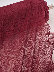 Кружевное полотно "Милада" (фестон с 2х ст.) цв.бордовый, ш.1.3м, хлопок-80%, нейлон-20%, 100гр/м.кв