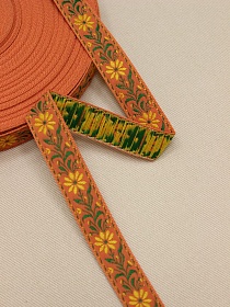Жак.лента 18мм Желтые цветы на темно-персиковом