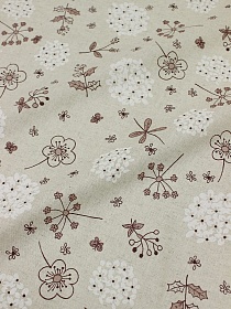 10906 товаровПолулен "Белые гортензии на суровом" цв.кофейно-розовый, ш.1.5м, лен-30%, хл-70%, 140гр/м.кв