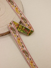 10906 товаровЖак.лента 24мм Т.кленово-зеленые/желтые огурцы на бежевом