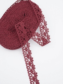 Кружево цв.бордово-красный, ш.20мм, хлопок-90%, п/э-10%, 10м, рис.015/17