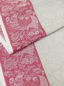 Холст полотенечный жаккард "Птицы" цв.фуксия/серый, ш.0.5м, лен-30%, хлопок-70%, 210гр/м.кв