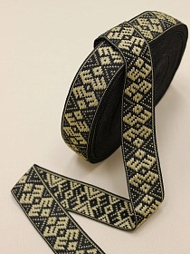 Лента тканая для поясов, 40мм Бежево-желтый орнамент на черном