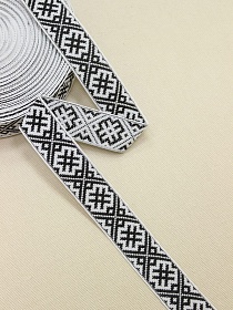 Жак.лента 24мм Черный орнамент на белом