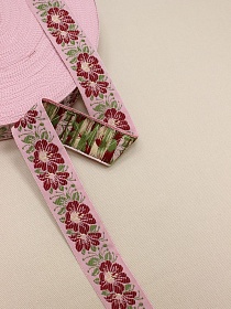 10901 товаровЖак.лента 33мм Бордовые цветы на розовом