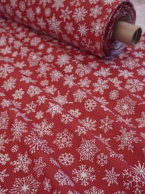 Бязь "Белые снежинки" цв.винтажный темно-красный, СОРТ2, ш.1.5м, хлопок-100%, 120гр/м.кв