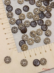 Пуговица кокос, узор по кругу, 13мм, 2 отверстия
