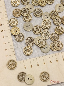 10925 товаровПуговица светлый кокос, Цветочек в центре, 15мм, 2 отверстия