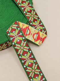 Жак.лента 33мм Вышивка (цв.желтый/красный/белый) на зеленом