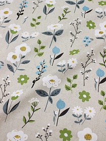 Брак(цена снижена) Полулен "Цветочный перезвон" (на суровом), ш.1.5м, лен-30%, хл-70%, 147гр/м.кв